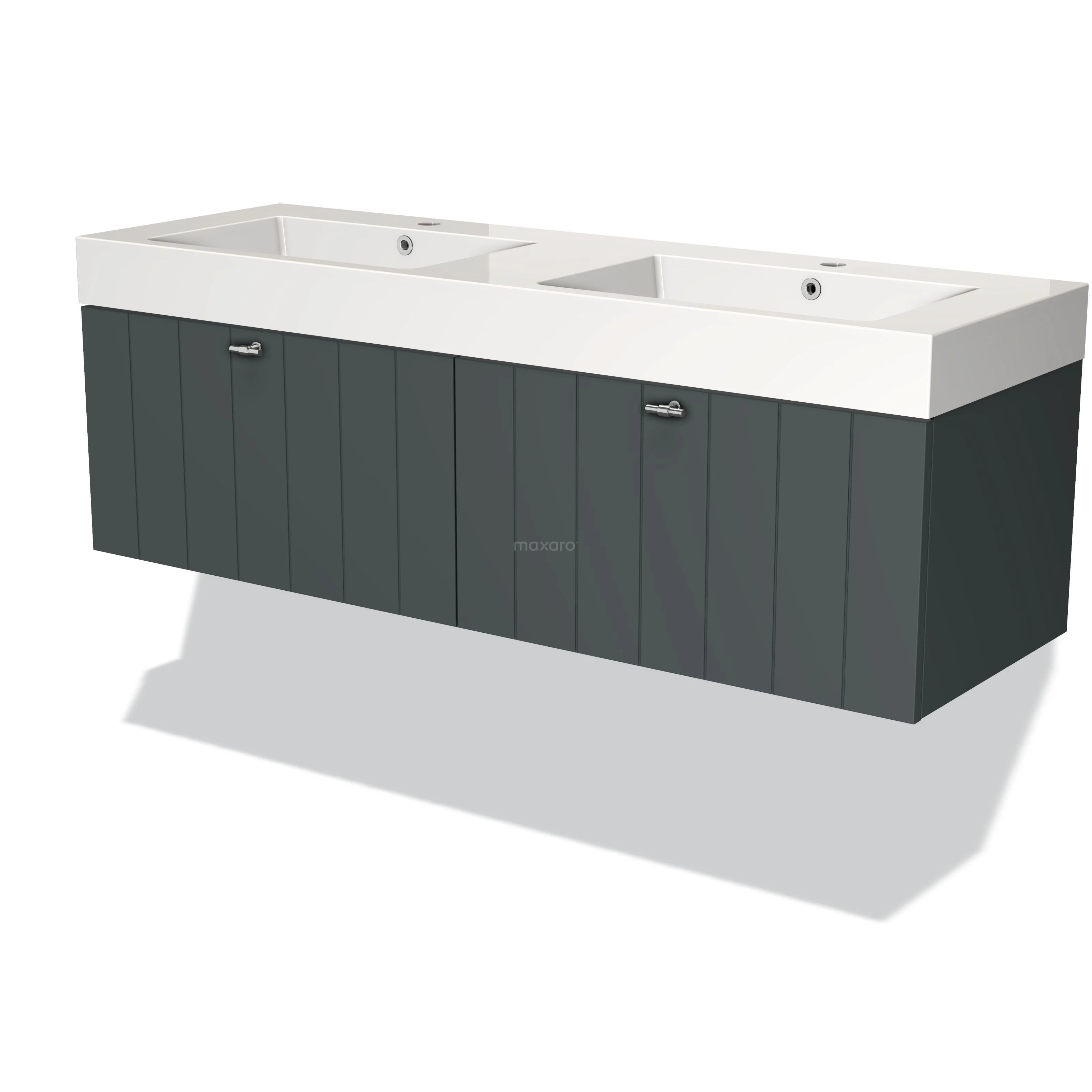 Modulo Waschtische | 140 cm Dunkelgrau Lamelle front Mineralguss 2 nebeneinanderliegende Schubladen