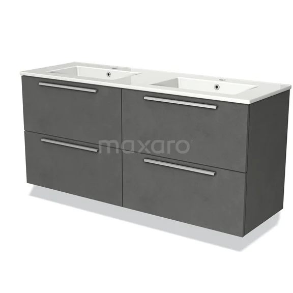 Modulo Waschtische | 140 cm Dunkelgrauer Beton Flach front Keramik 4 Schubladen