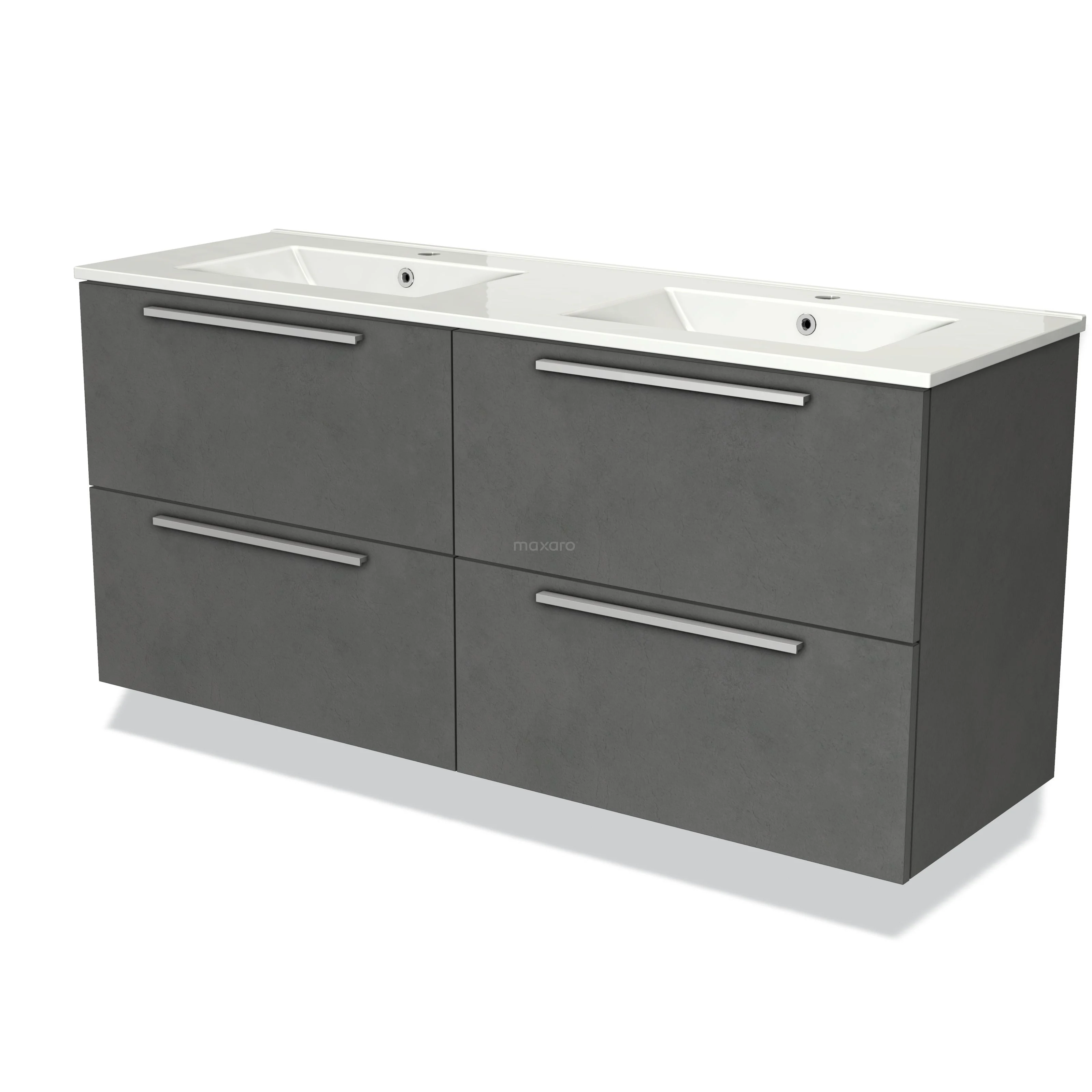 Modulo Waschtische | 140 cm Dunkelgrauer Beton Flach front Keramik 4 Schubladen