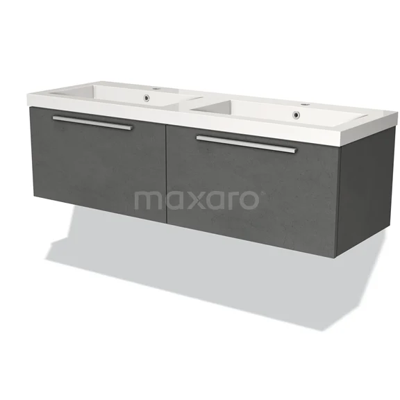 Modulo Waschtische | 140 cm Dunkelgrauer Beton Flach front Mineralguss 2 nebeneinanderliegende Schubladen