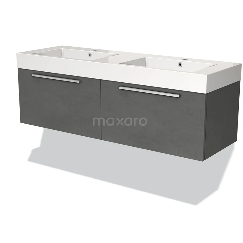 Modulo Waschtische | 140 cm Dunkelgrauer Beton Flach front Mineralguss 2 nebeneinanderliegende Schubladen