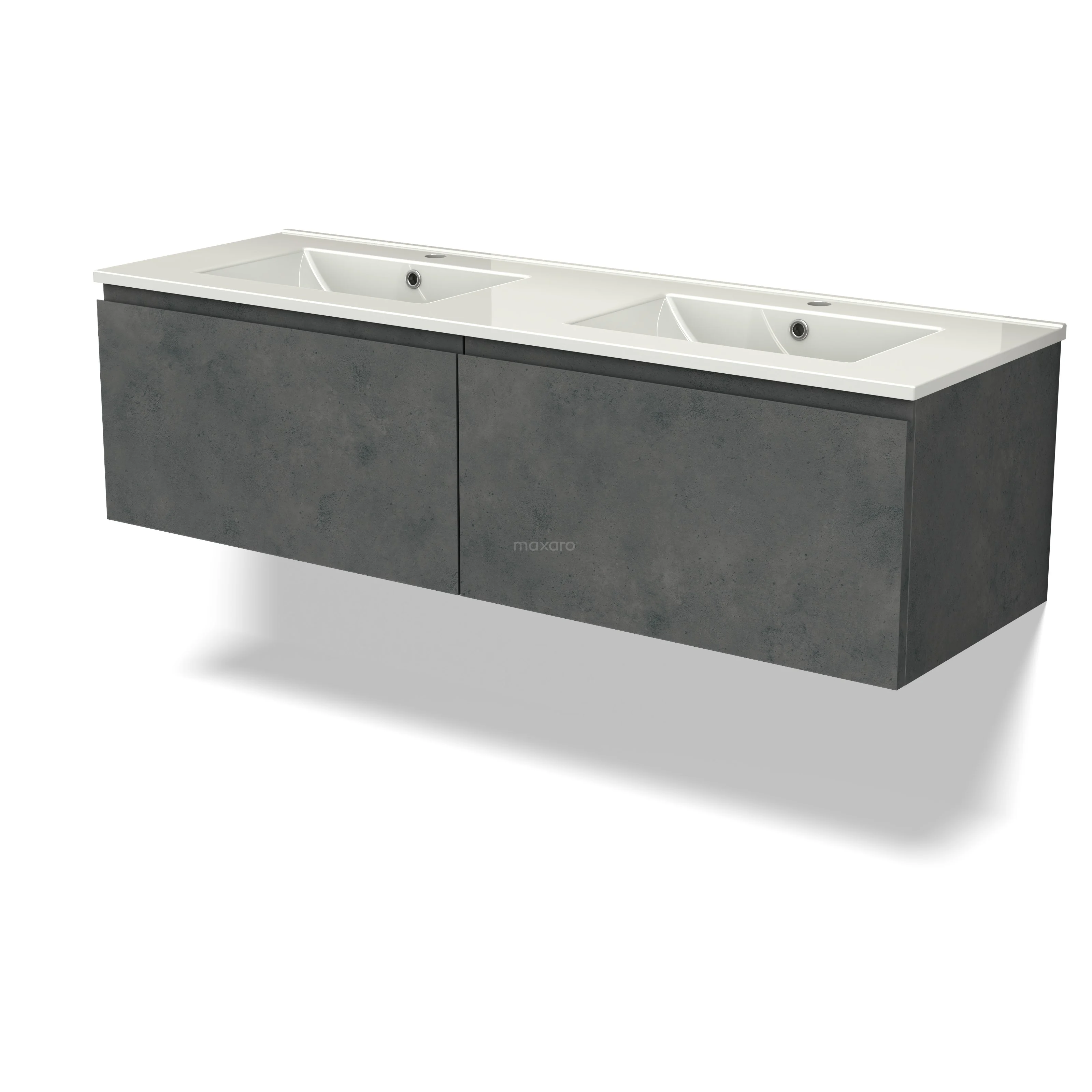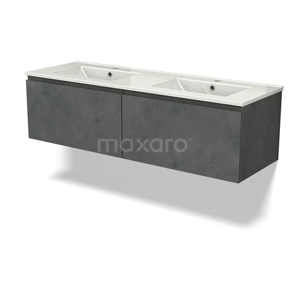 Modulo Waschtische | 140 cm Dunkelgrauer Beton Grifflos front Keramik 2 nebeneinanderliegende Schubladen