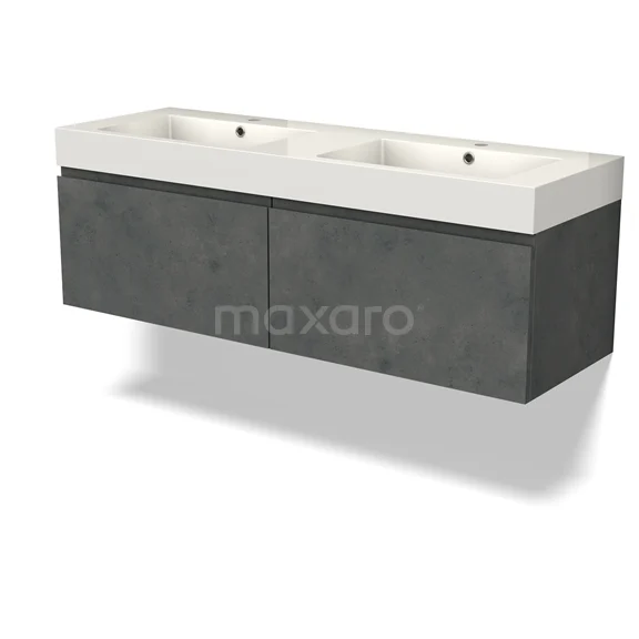 Modulo Waschtische | 140 cm Dunkelgrauer Beton Grifflos front Mineralguss 2 nebeneinanderliegende Schubladen