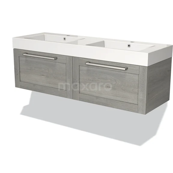 Modulo Waschtische | 140 cm Graue Eiche Rahmen front Mineralguss 2 nebeneinanderliegende Schubladen
