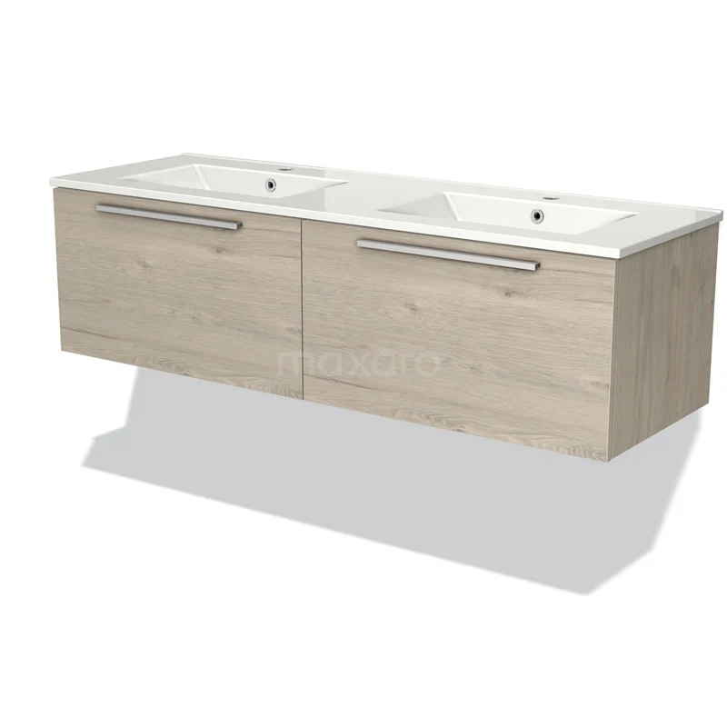 Modulo Waschtische | 140 cm Hellgraue Eiche Flach front Keramik 2 nebeneinanderliegende Schubladen