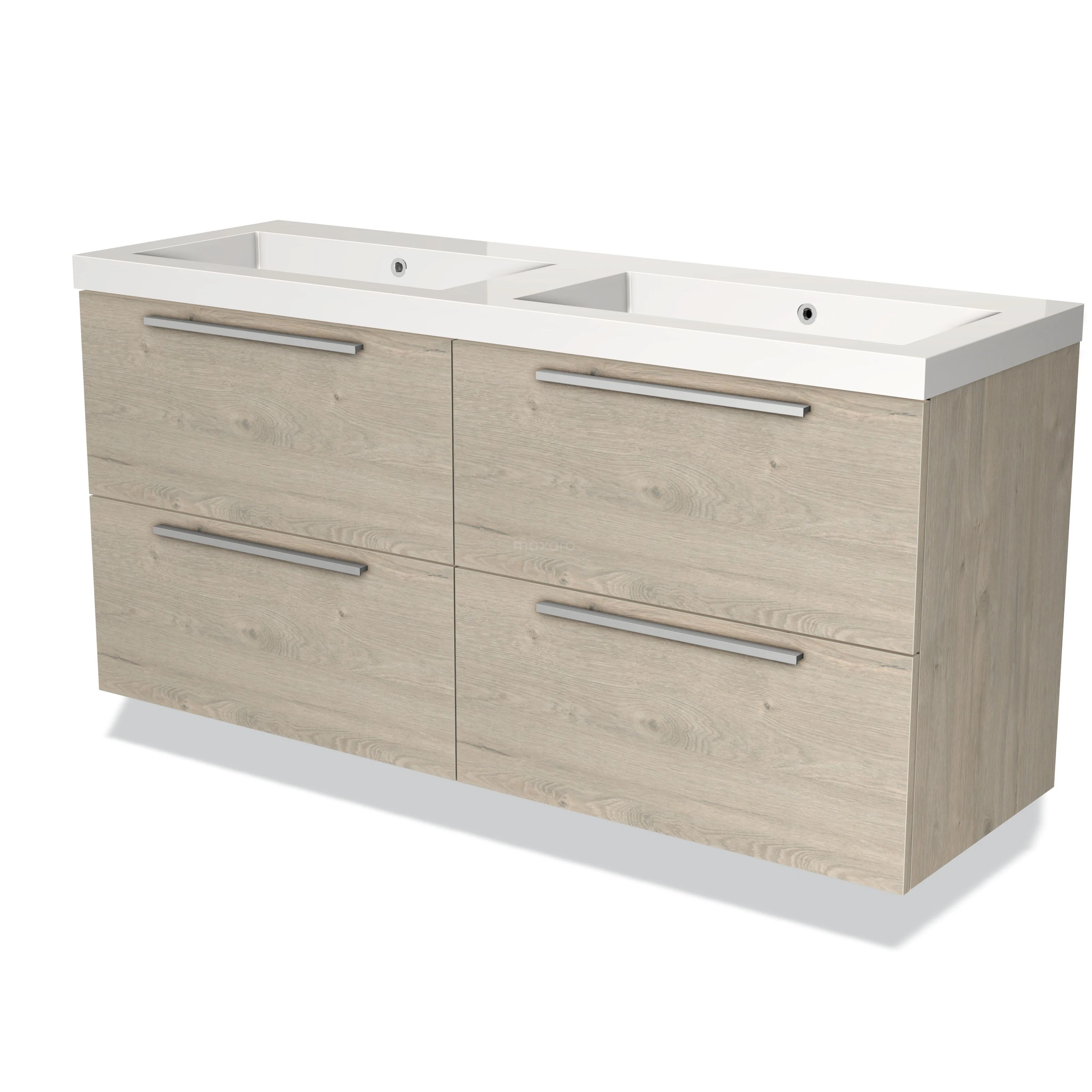 Modulo Waschtische | 140 cm Hellgraue Eiche Flach front Mineralguss 4 Schubladen