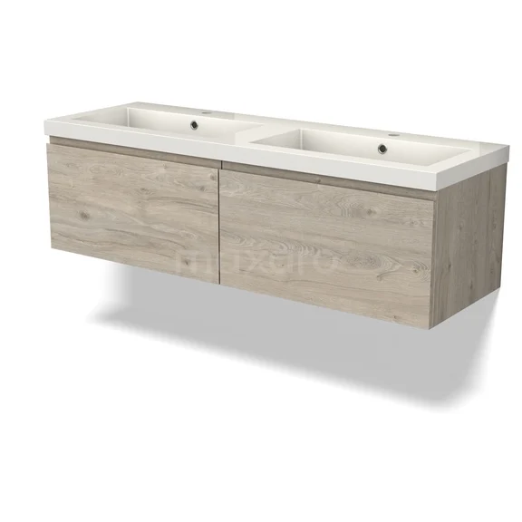 Modulo Waschtische | 140 cm Hellgraue Eiche Grifflos front Mineralguss 2 nebeneinanderliegende Schubladen