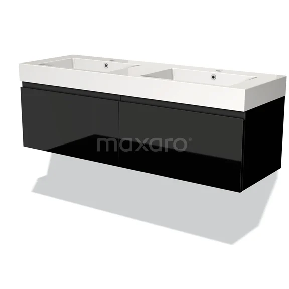 Modulo Waschtische | 140 cm Hochglanz Schwarz Grifflos front Mineralguss 2 nebeneinanderliegende Schubladen