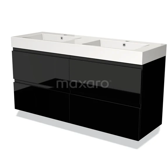 Modulo Waschtische | 140 cm Hochglanz Schwarz Grifflos front Mineralguss 4 Schubladen