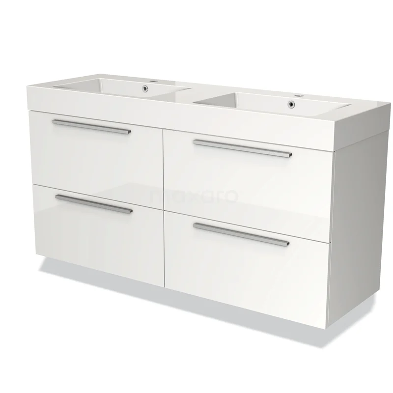 Modulo Waschtische | 140 cm Hochglanz Weiß Flach front Mineralguss 4 Schubladen