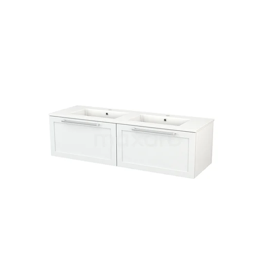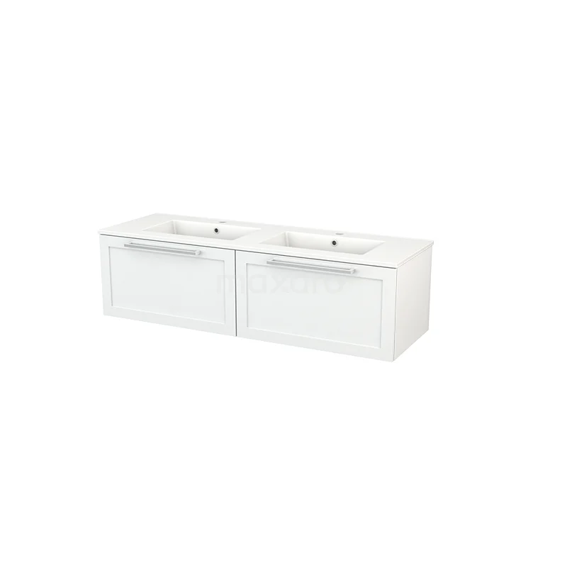 Modulo+ Waschtische | 140 cm Hochglanz Weiß Rahmen front Keramik 2 nebeneinanderliegende Schubladen