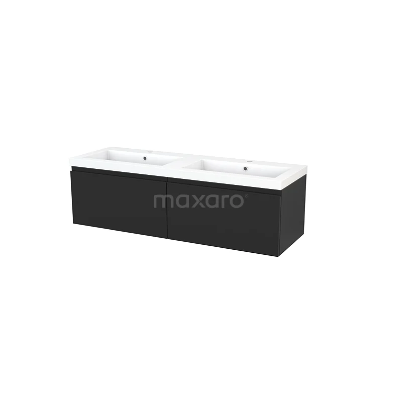 Modulo+ Waschtische | 140 cm Kohlenstoff Grifflos front Mineralguss 2 nebeneinanderliegende Schubladen