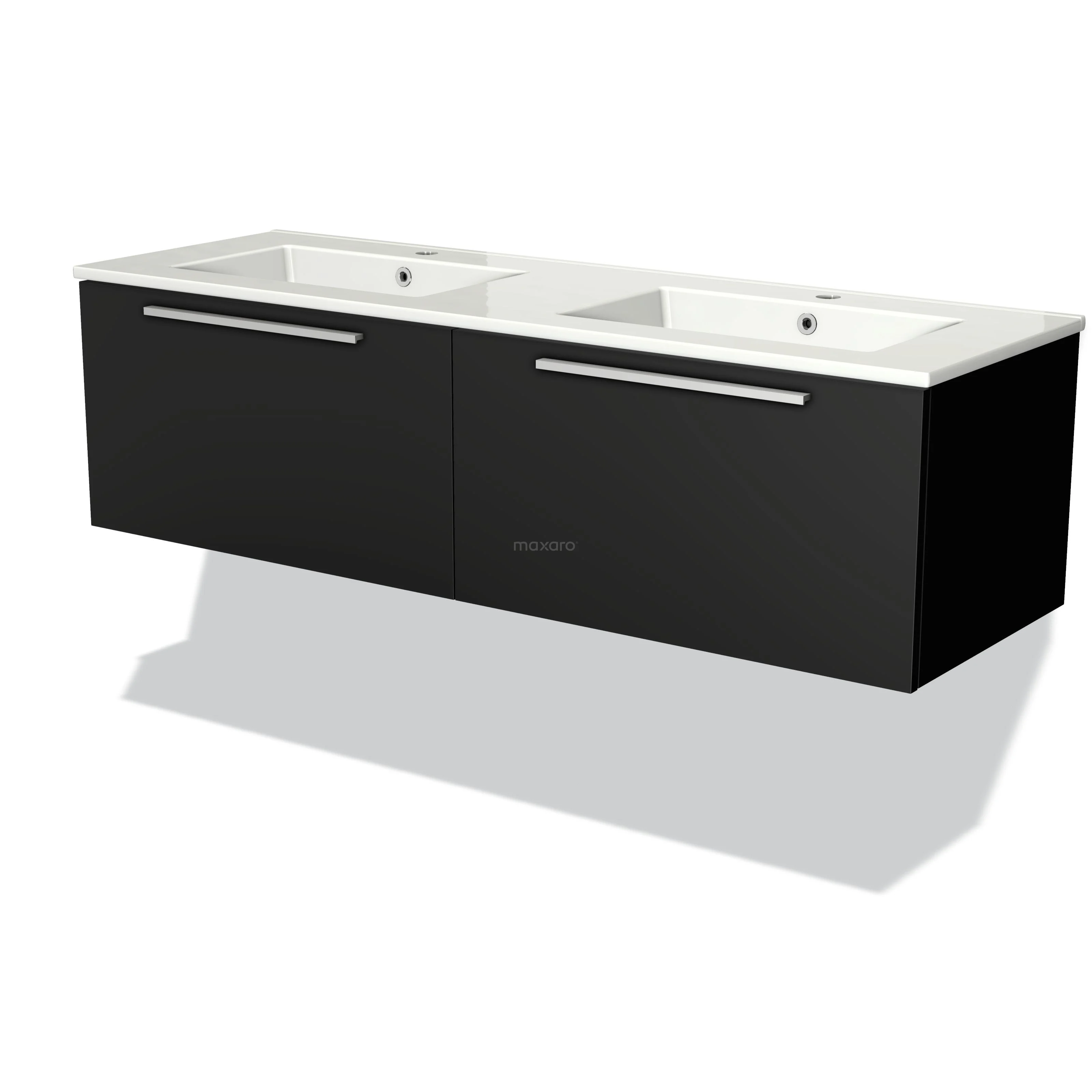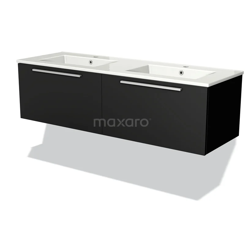 Modulo Waschtische | 140 cm Matt Schwarz Flach front Keramik 2 nebeneinanderliegende Schubladen