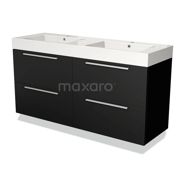 Modulo Waschtische | 140 cm Matt Schwarz Flach front Mineralguss 4 Schubladen