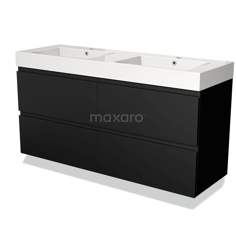 Modulo Waschtische | 140 cm Matt Schwarz Grifflos front Mineralguss 4 Schubladen