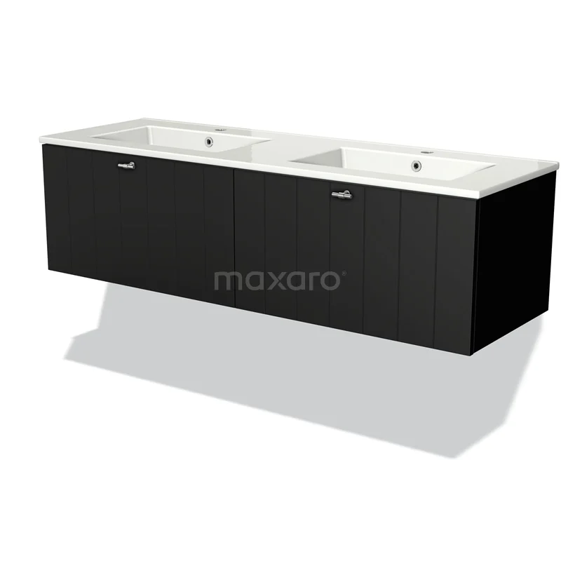 Modulo Waschtische | 140 cm Matt Schwarz Lamelle front Keramik 2 nebeneinanderliegende Schubladen