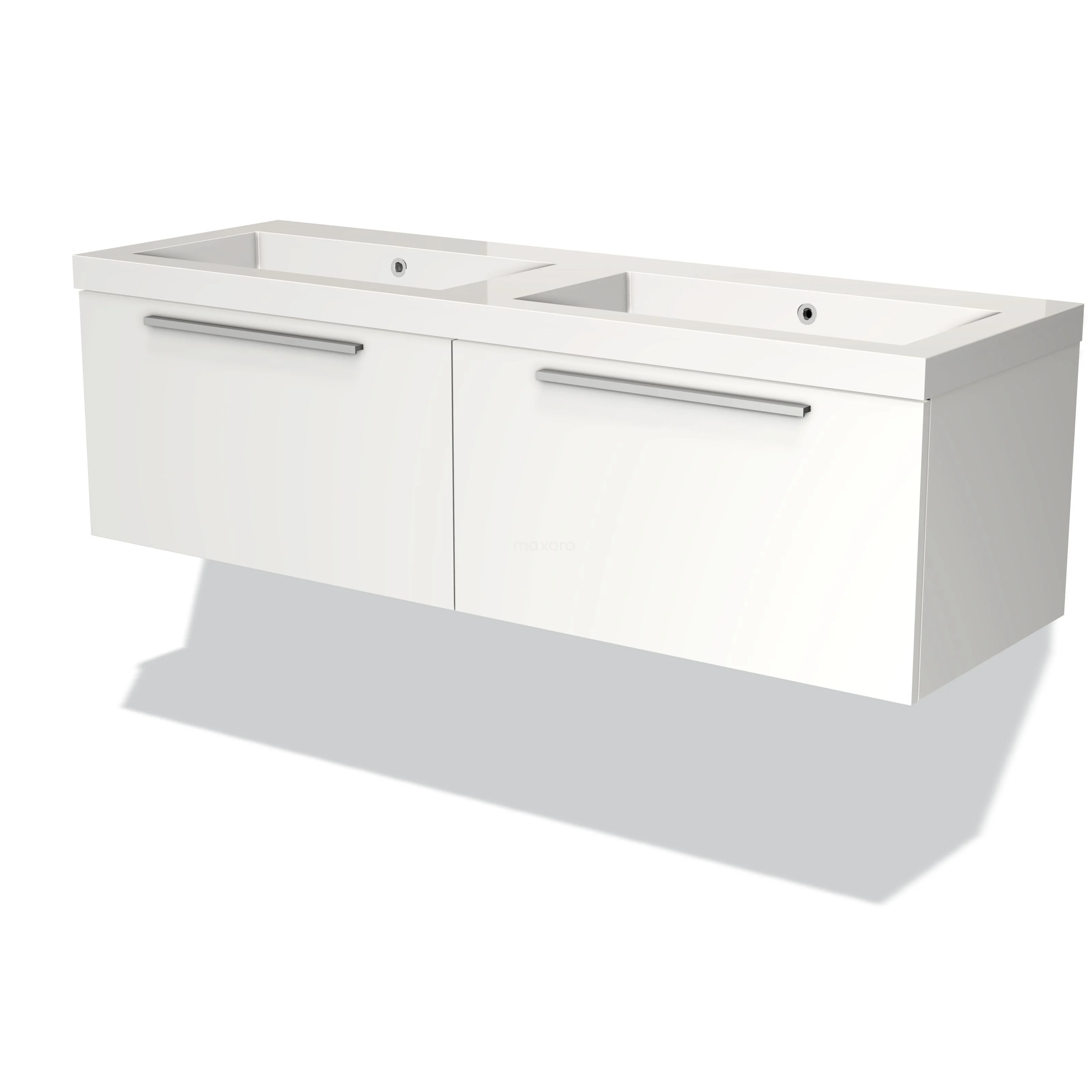 Modulo Waschtische | 140 cm Matt Weiß Flach front Mineralguss 2 nebeneinanderliegende Schubladen