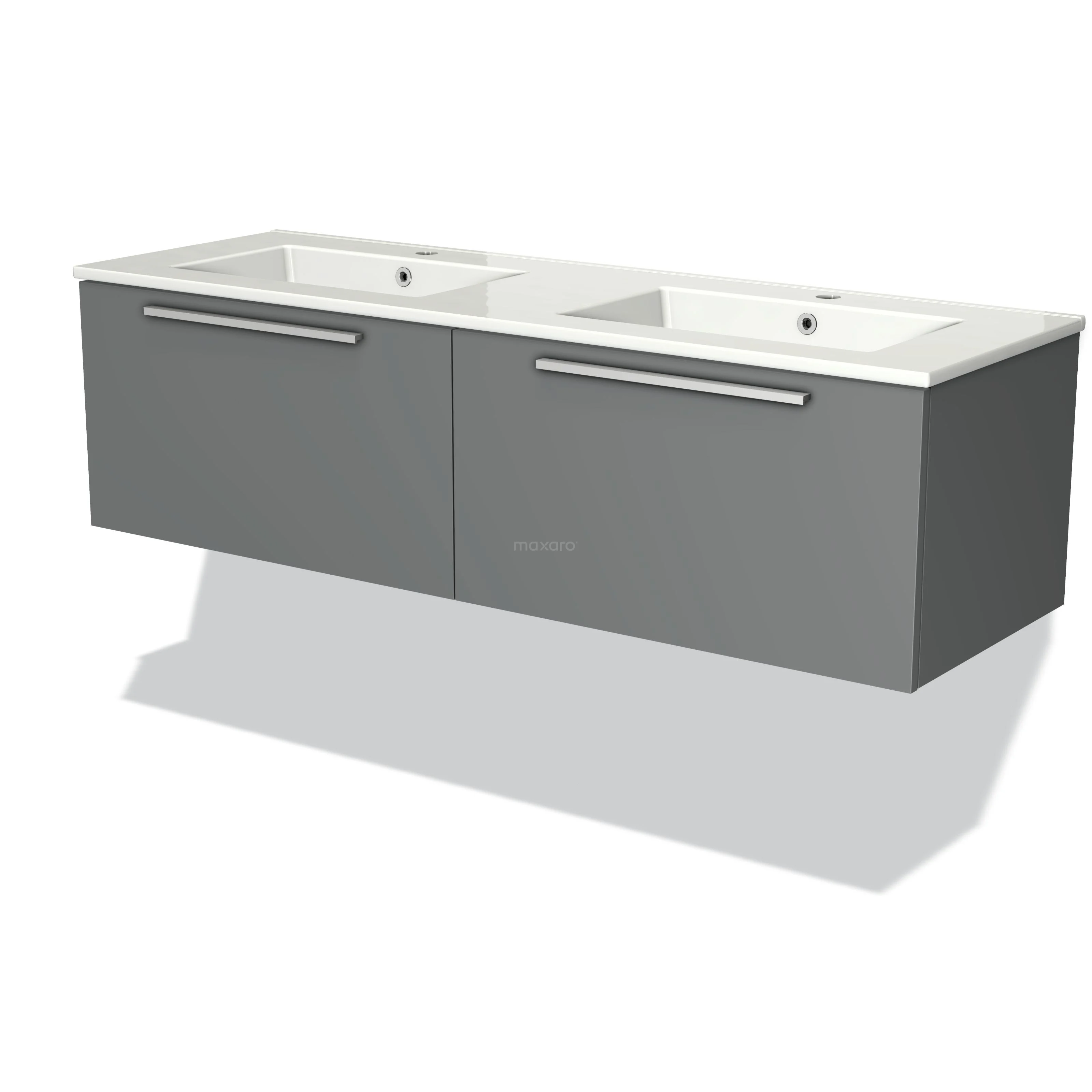 Modulo Waschtische | 140 cm Mittelgrau Flach front Keramik 2 nebeneinanderliegende Schubladen