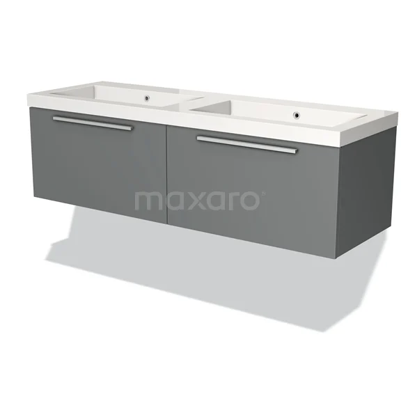 Modulo Waschtische | 140 cm Mittelgrau Flach front Mineralguss 2 nebeneinanderliegende Schubladen