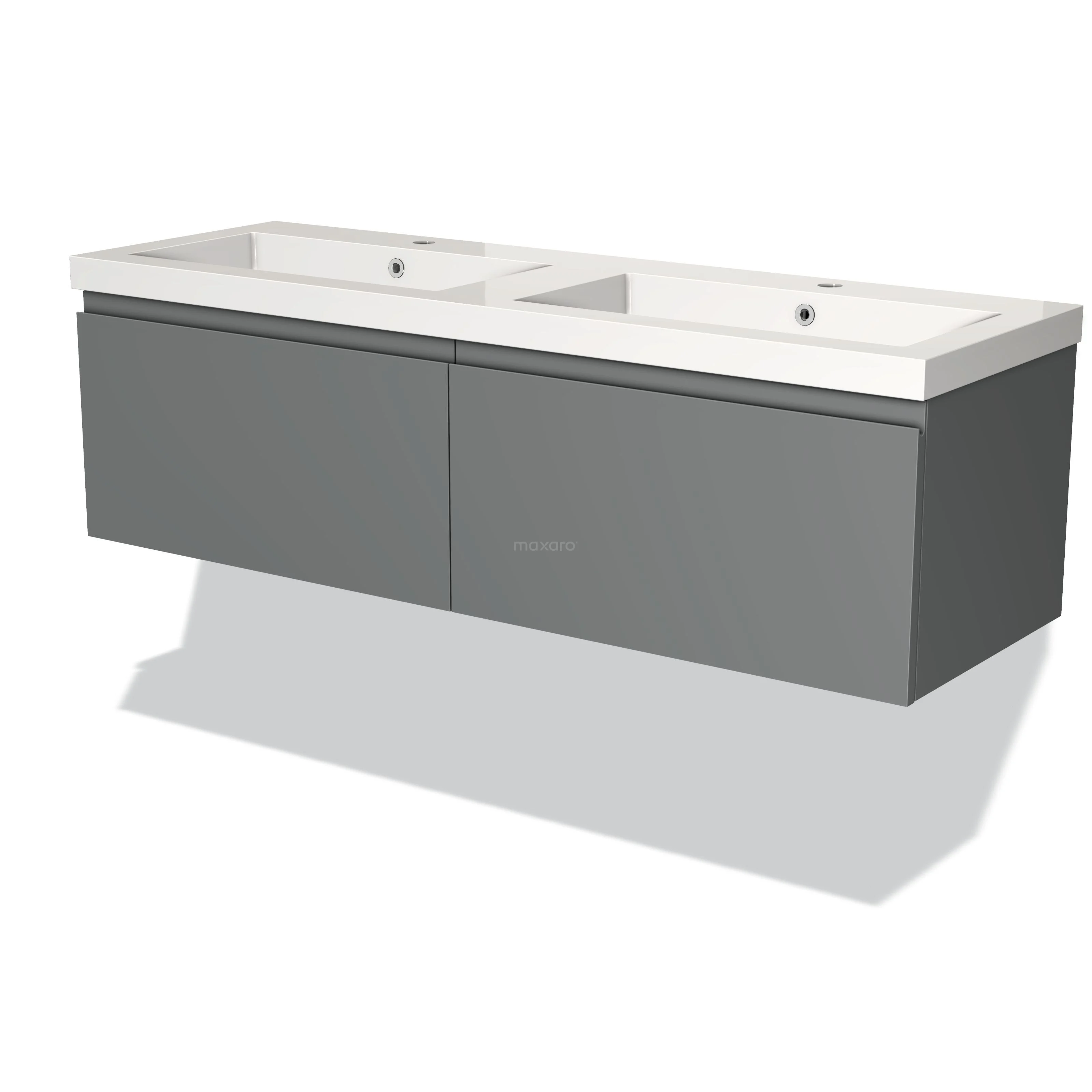 Modulo Waschtische | 140 cm Mittelgrau Grifflos front Mineralguss 2 nebeneinanderliegende Schubladen