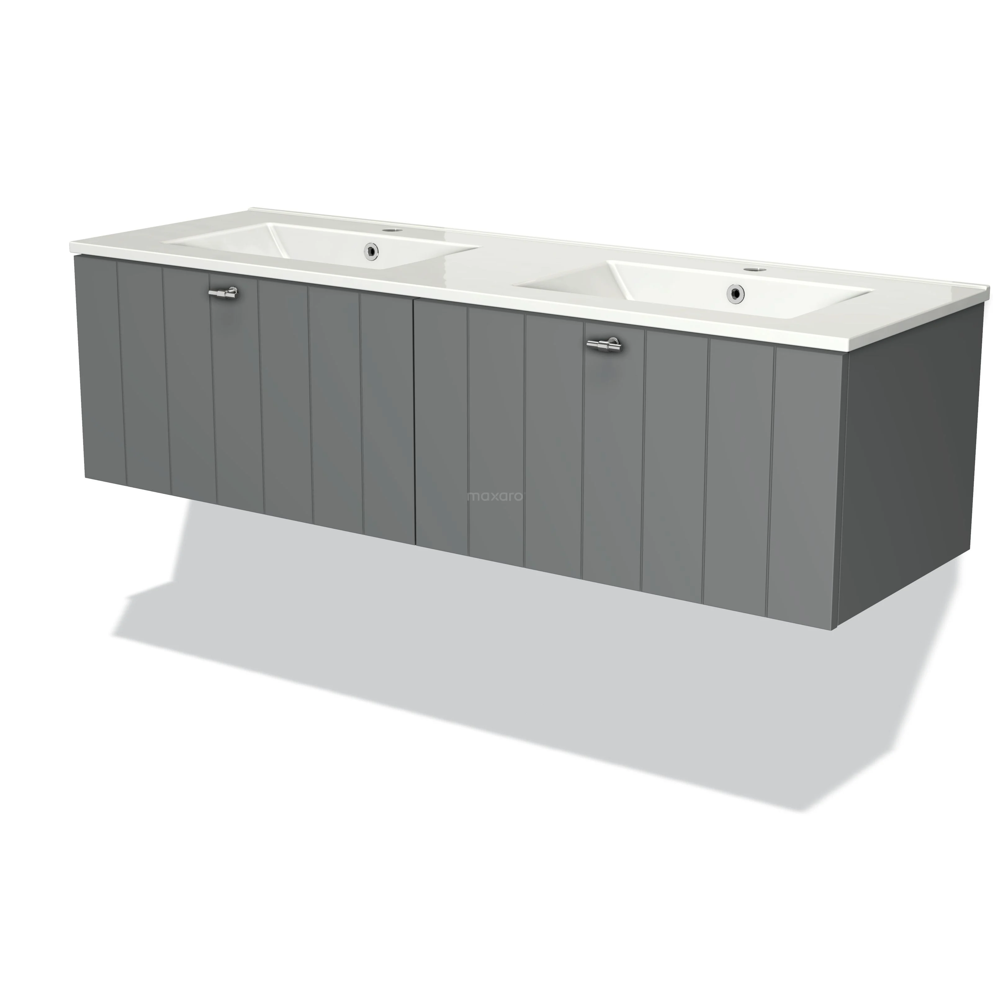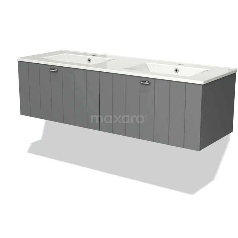 Modulo Waschtische | 140 cm Mittelgrau Lamelle front Keramik 2 nebeneinanderliegende Schubladen