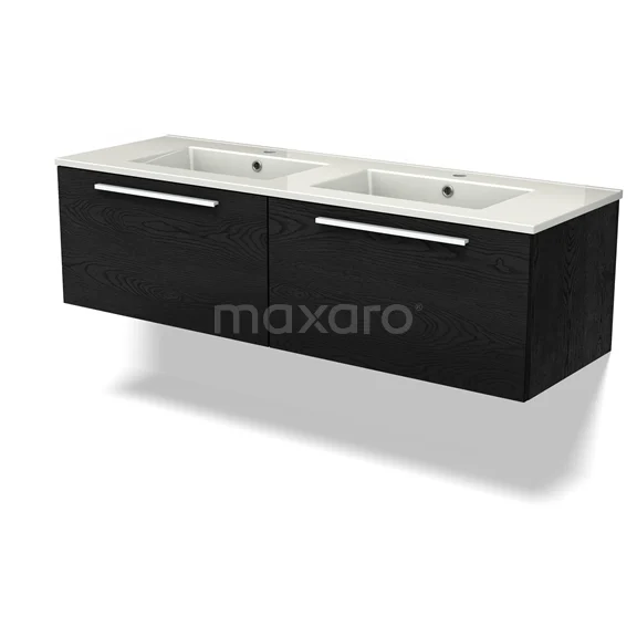 Modulo Waschtische | 140 cm Schwarze Eiche Flach front Keramik 2 nebeneinanderliegende Schubladen