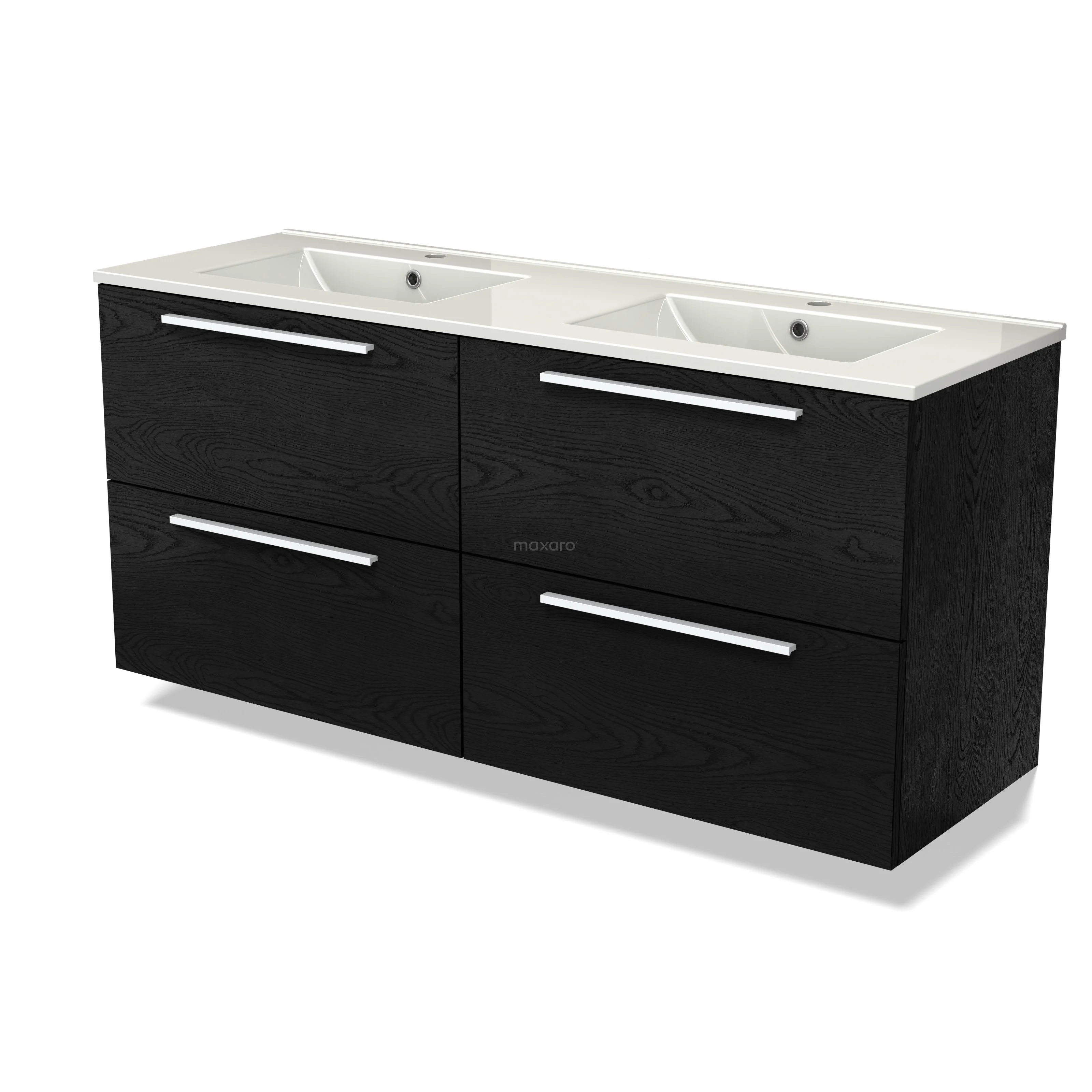 Modulo Waschtische | 140 cm Schwarze Eiche Flach front Keramik 4 Schubladen