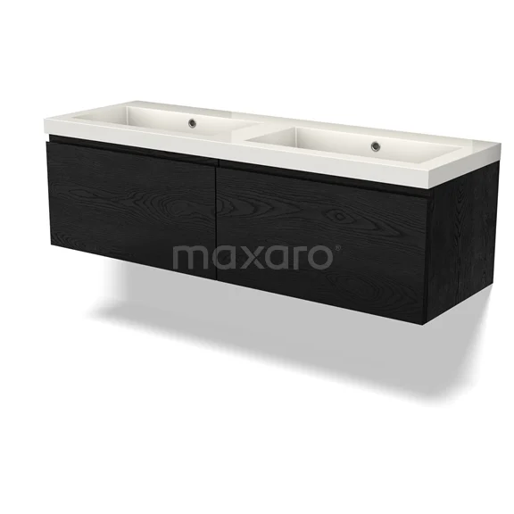 Modulo Waschtische | 140 cm Schwarze Eiche Grifflos front Mineralguss 2 nebeneinanderliegende Schubladen
