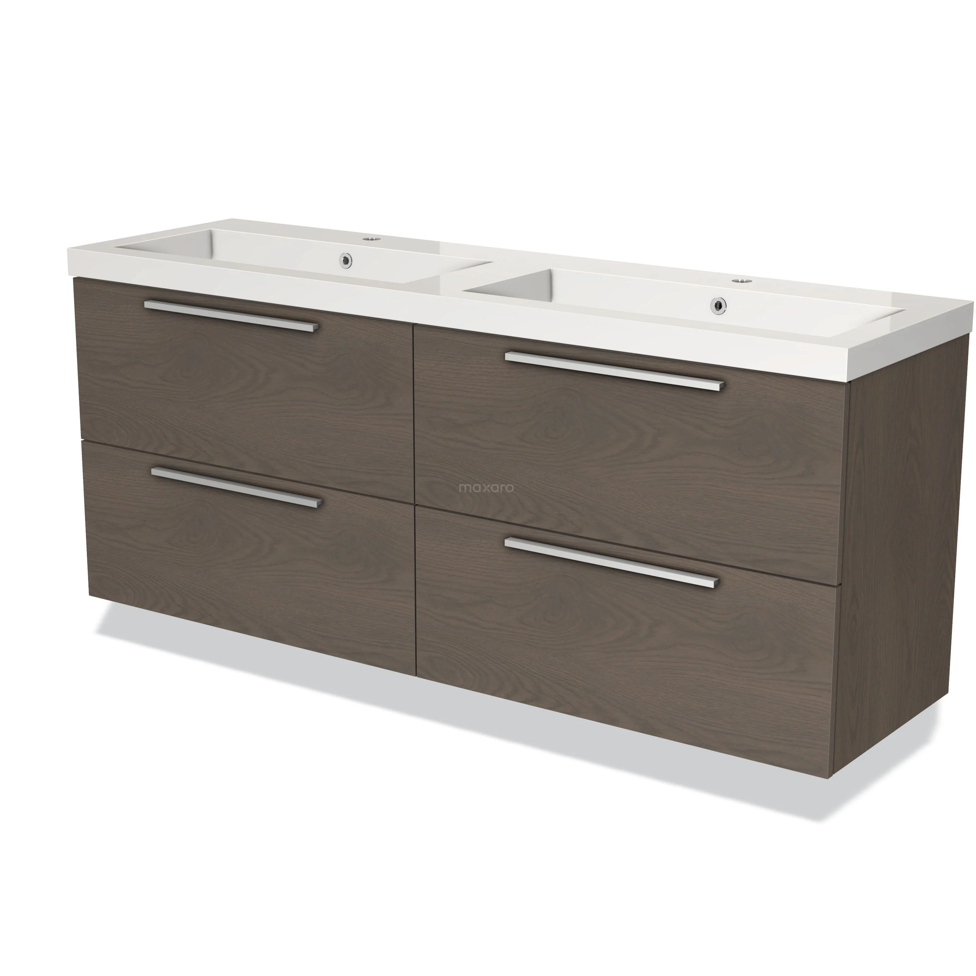 Modulo Waschtische | 160 cm Dunkelbraune Eiche Flach front Mineralguss 4 Schubladen
