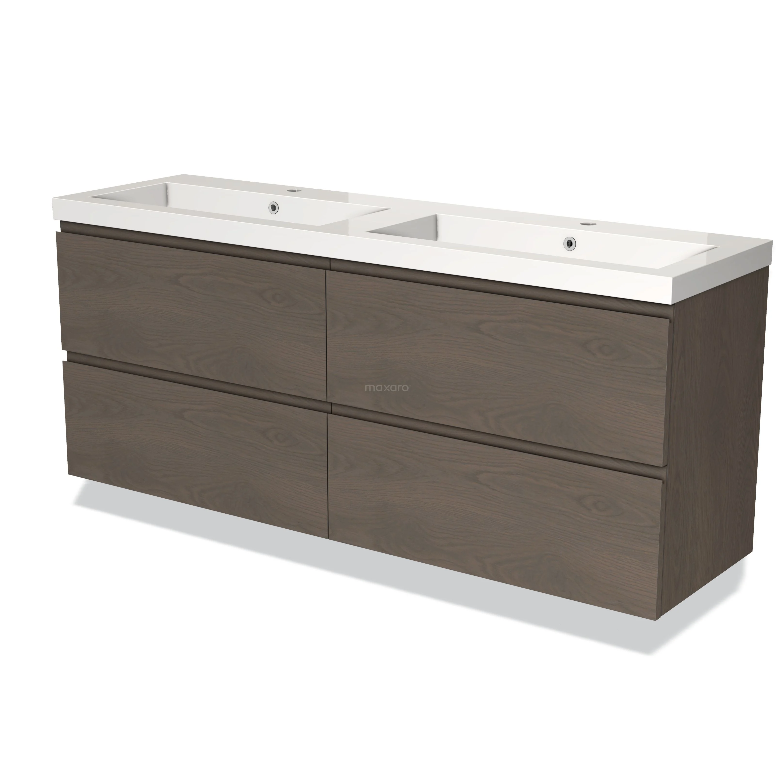 Modulo Waschtische | 160 cm Dunkelbraune Eiche Grifflos front Mineralguss 4 Schubladen