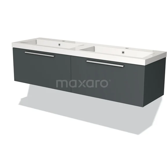 Modulo Waschtische | 160 cm Dunkelgrau Flach front Mineralguss 2 nebeneinanderliegende Schubladen