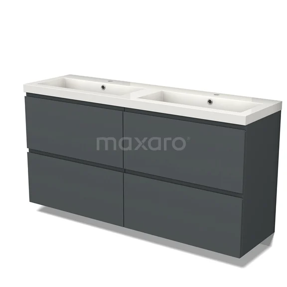 Modulo Waschtische | 160 cm Dunkelgrau Grifflos front Mineralguss 4 hohe Schubladen