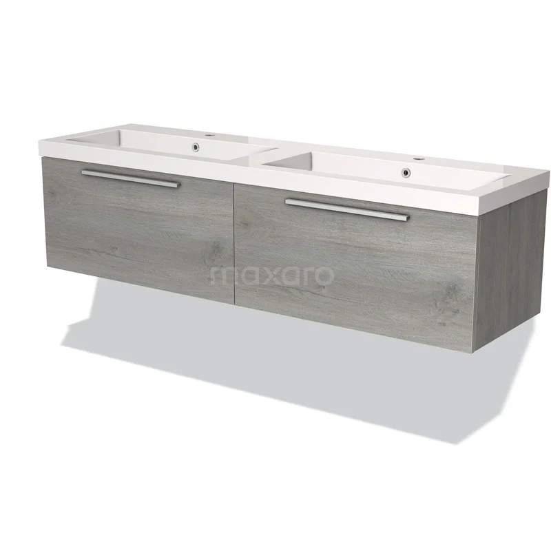 Modulo Waschtische | 160 cm Graue Eiche Flach front Mineralguss 2 nebeneinanderliegende Schubladen