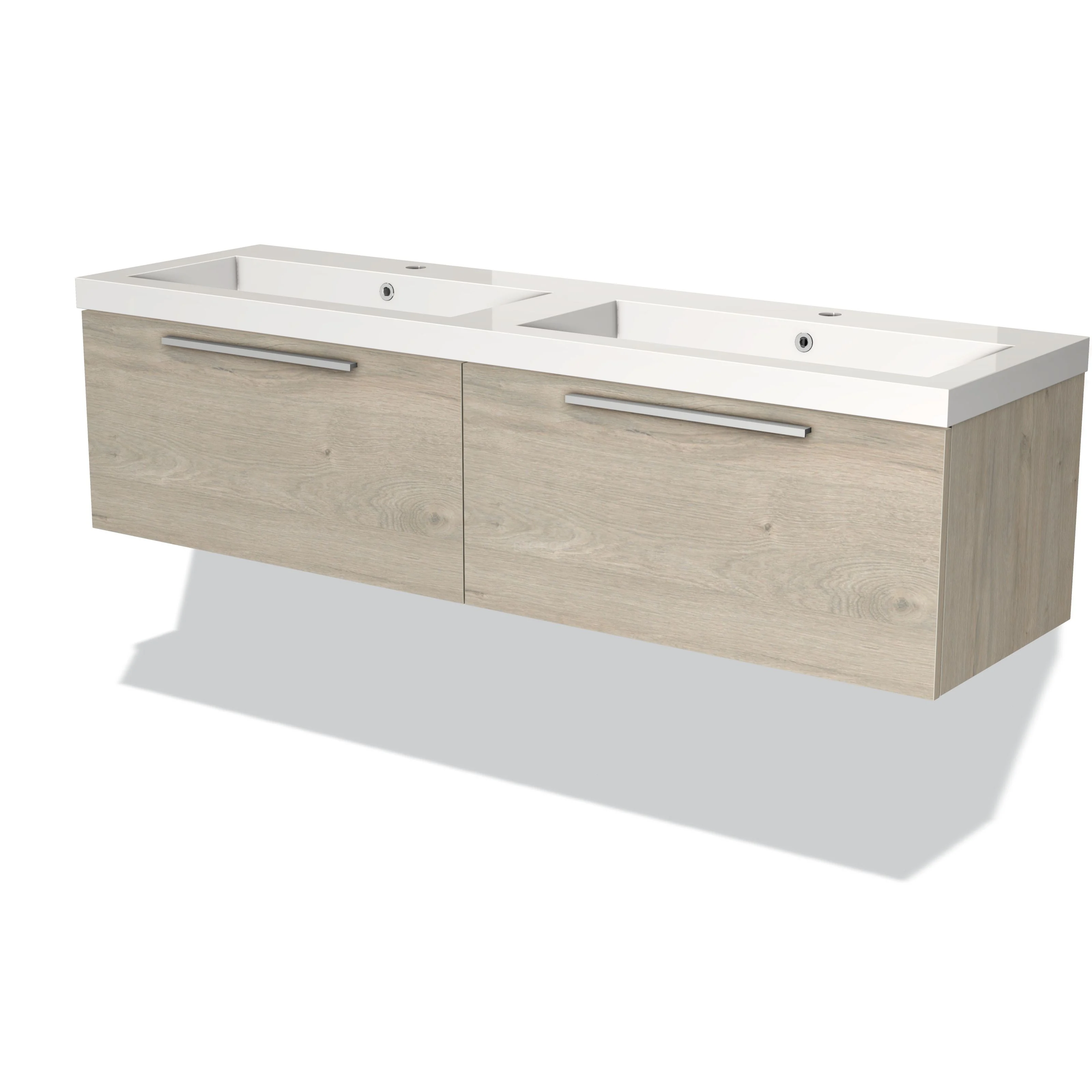 Modulo Waschtische | 160 cm Hellgraue Eiche Flach front Mineralguss 2 nebeneinanderliegende Schubladen