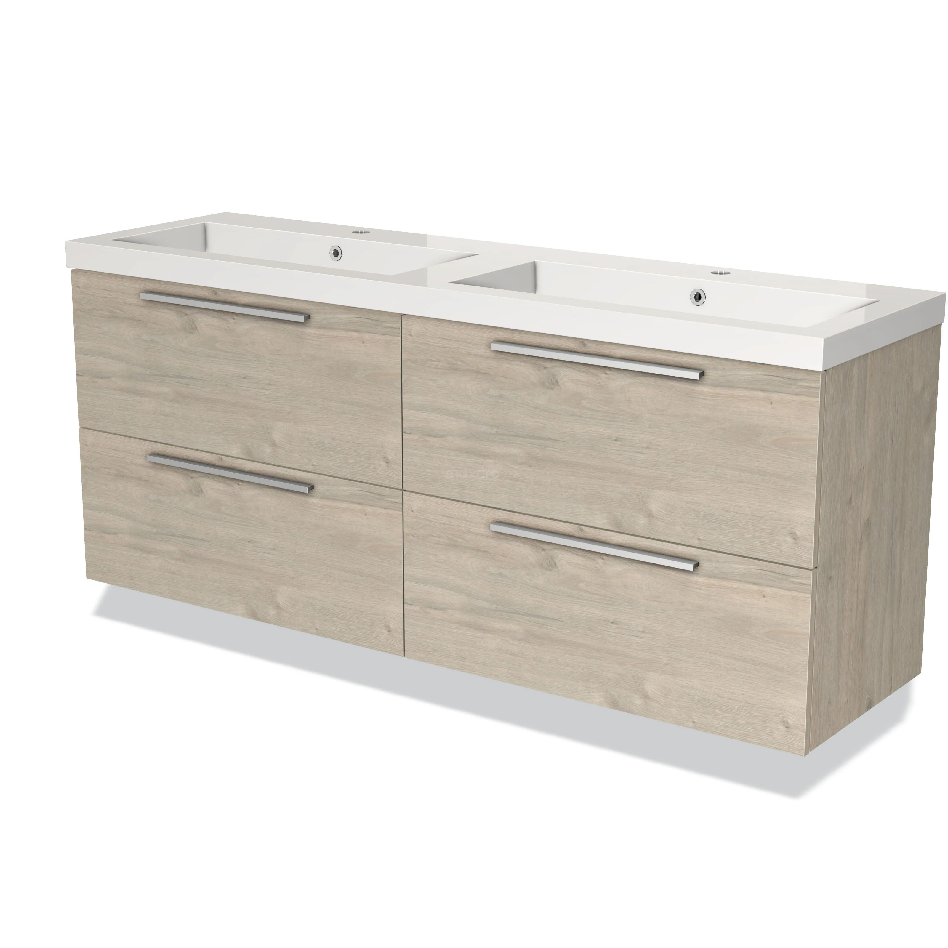 Modulo Waschtische | 160 cm Hellgraue Eiche Flach front Mineralguss 4 Schubladen