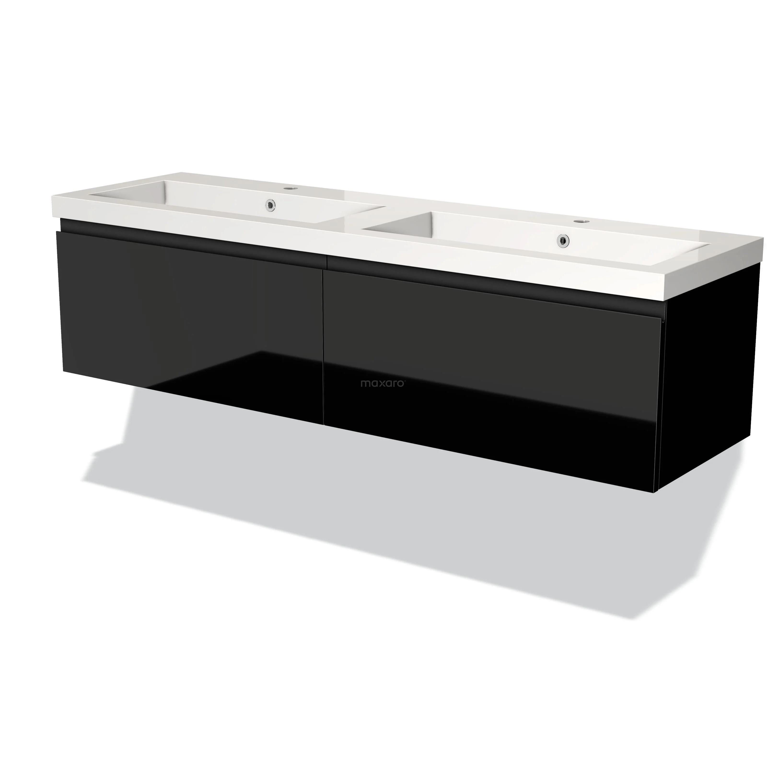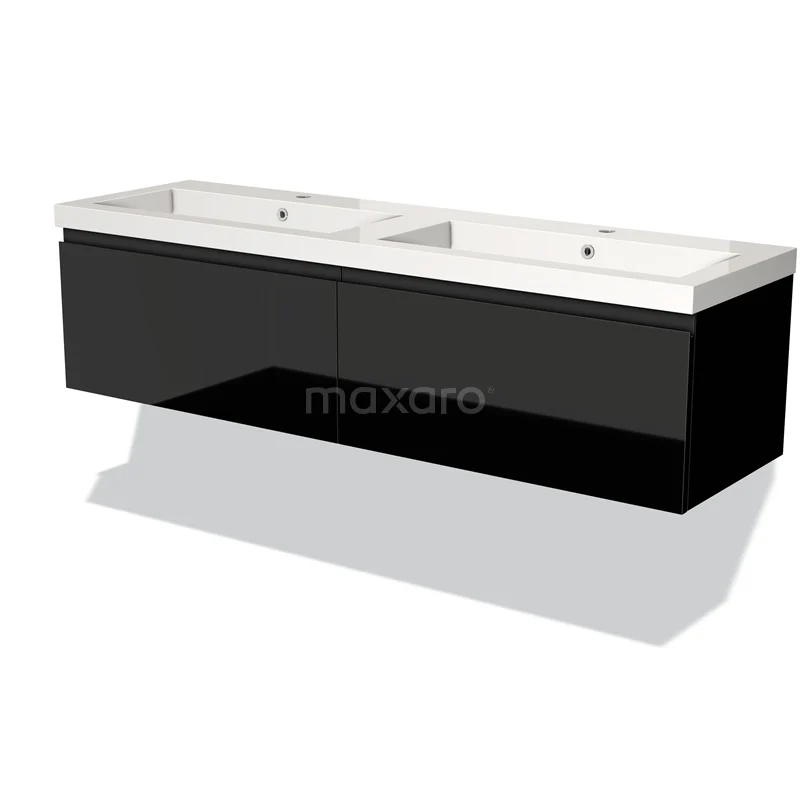 Modulo Waschtische | 160 cm Hochglanz Schwarz Grifflos front Mineralguss 2 nebeneinanderliegende Schubladen
