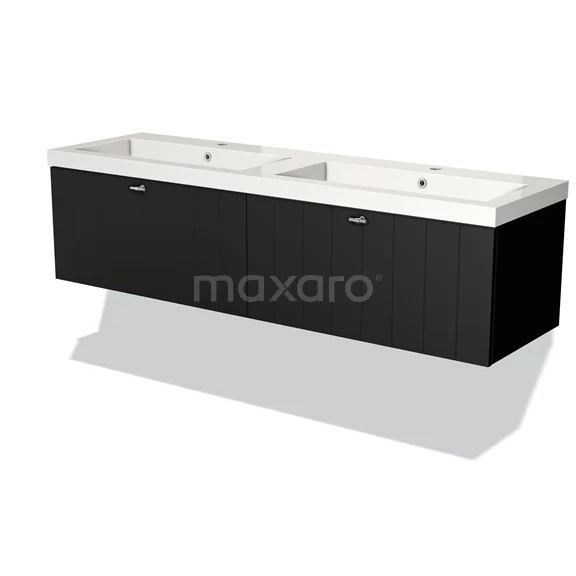 Modulo Waschtische | 160 cm Matt Schwarz Lamelle front Mineralguss 2 nebeneinanderliegende Schubladen