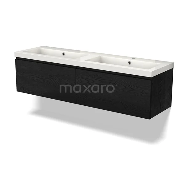 Modulo Waschtische | 160 cm Schwarze Eiche Grifflos front Mineralguss 2 nebeneinanderliegende Schubladen