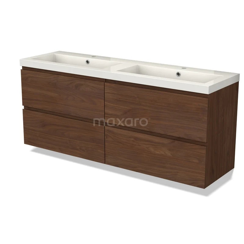Modulo Waschtische | 160 cm Walnuss Grifflos front Mineralguss 4 Schubladen