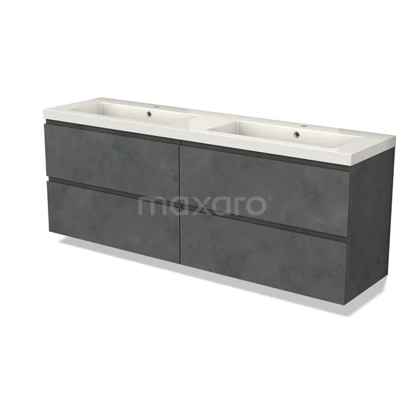 Modulo Waschtische | 180 cm Dunkelgrauer Beton Grifflos front Mineralguss 4 Schubladen
