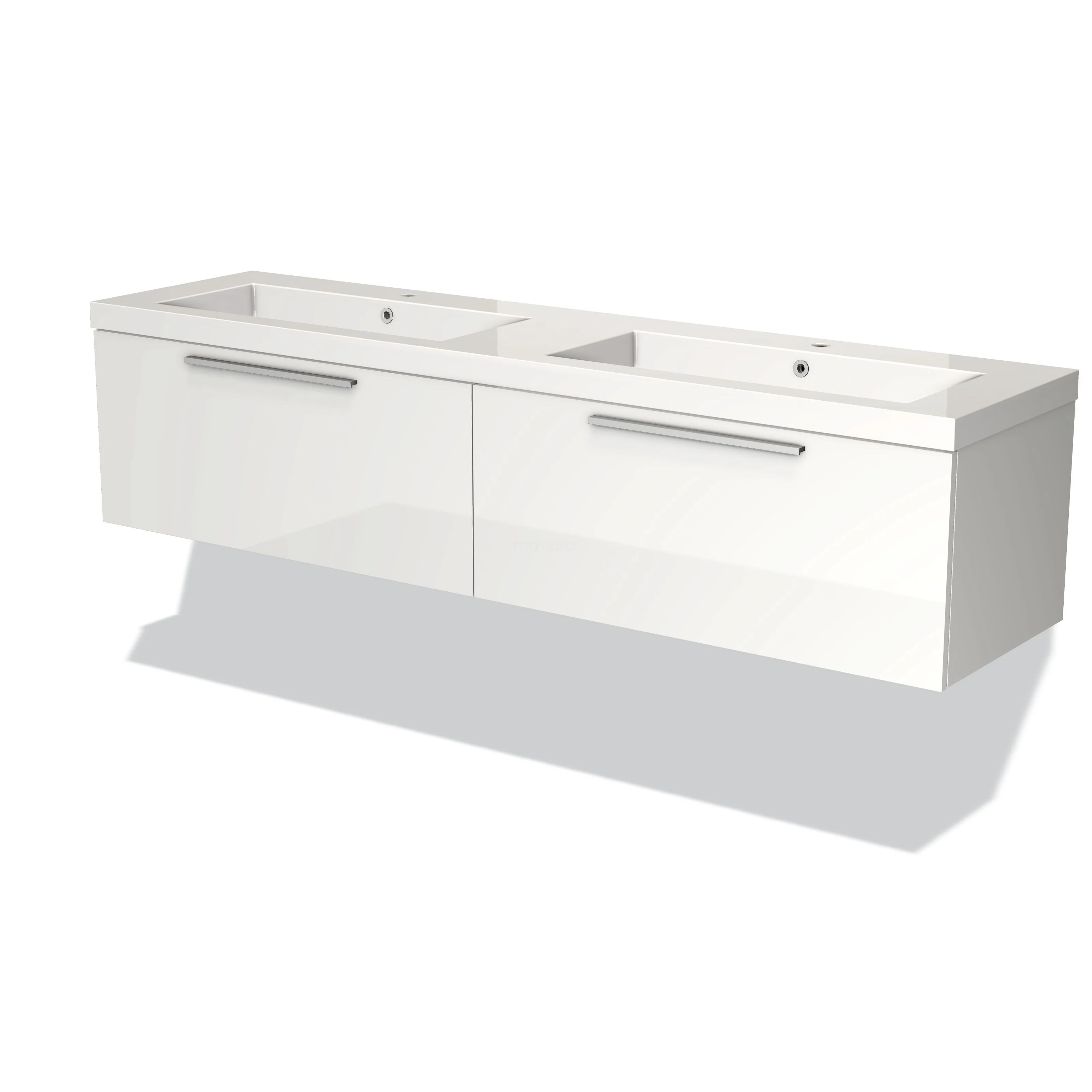 Modulo Waschtische | 180 cm Hochglanz Weiß Flach front Mineralguss 2 nebeneinanderliegende Schubladen