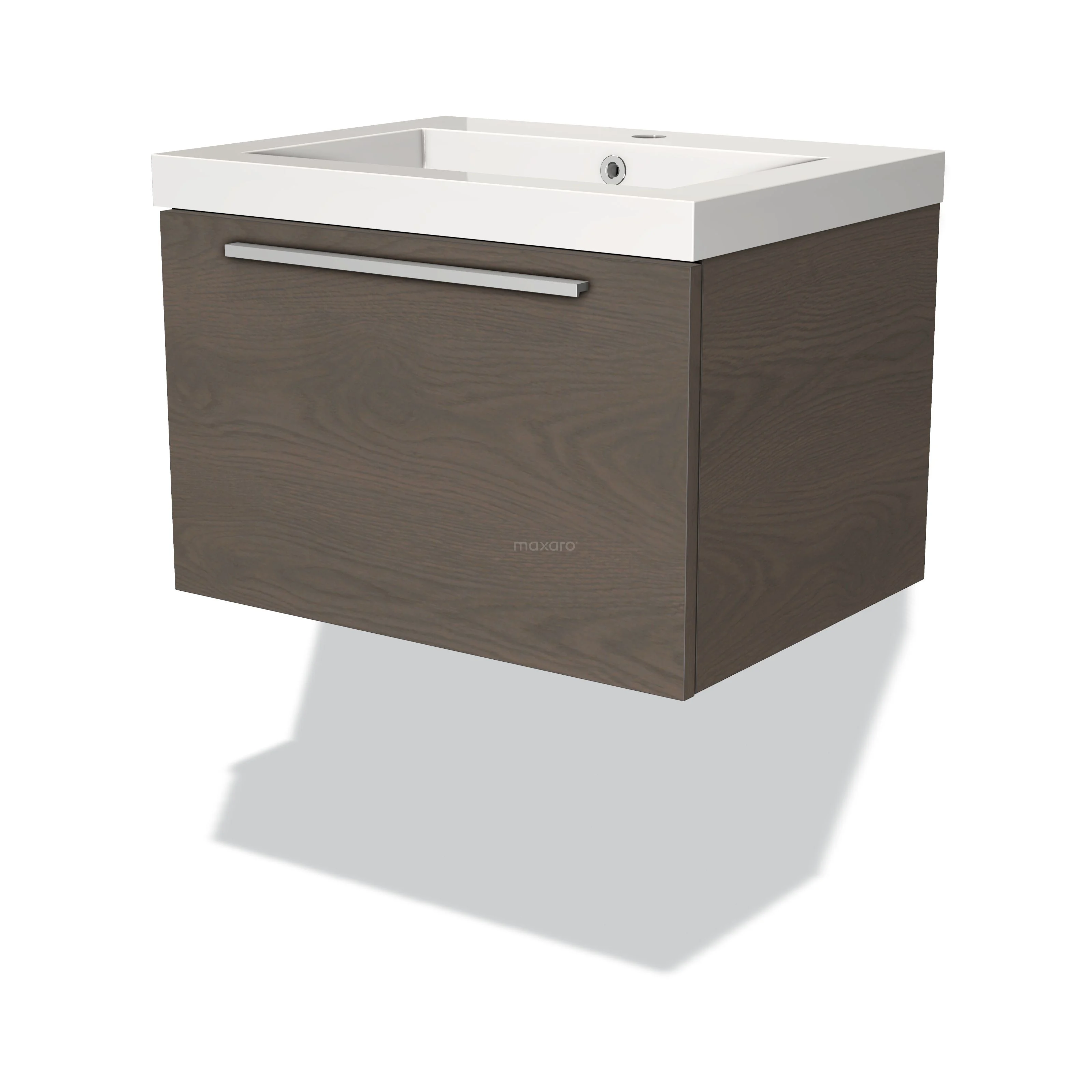 Modulo Waschtische | 60 cm Dunkelbraune Eiche Flach front Mineralguss 1 Schublade