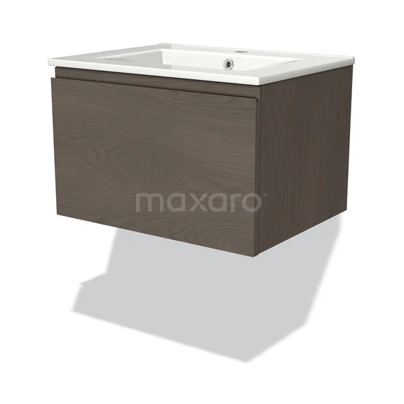Modulo Waschtische | 60 cm Dunkelbraune Eiche Grifflos front Keramik 1 Schublade