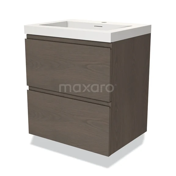 Modulo Waschtische | 60 cm Dunkelbraune Eiche Grifflos front Solid Surface 2 übereinanderliegende Schubladen