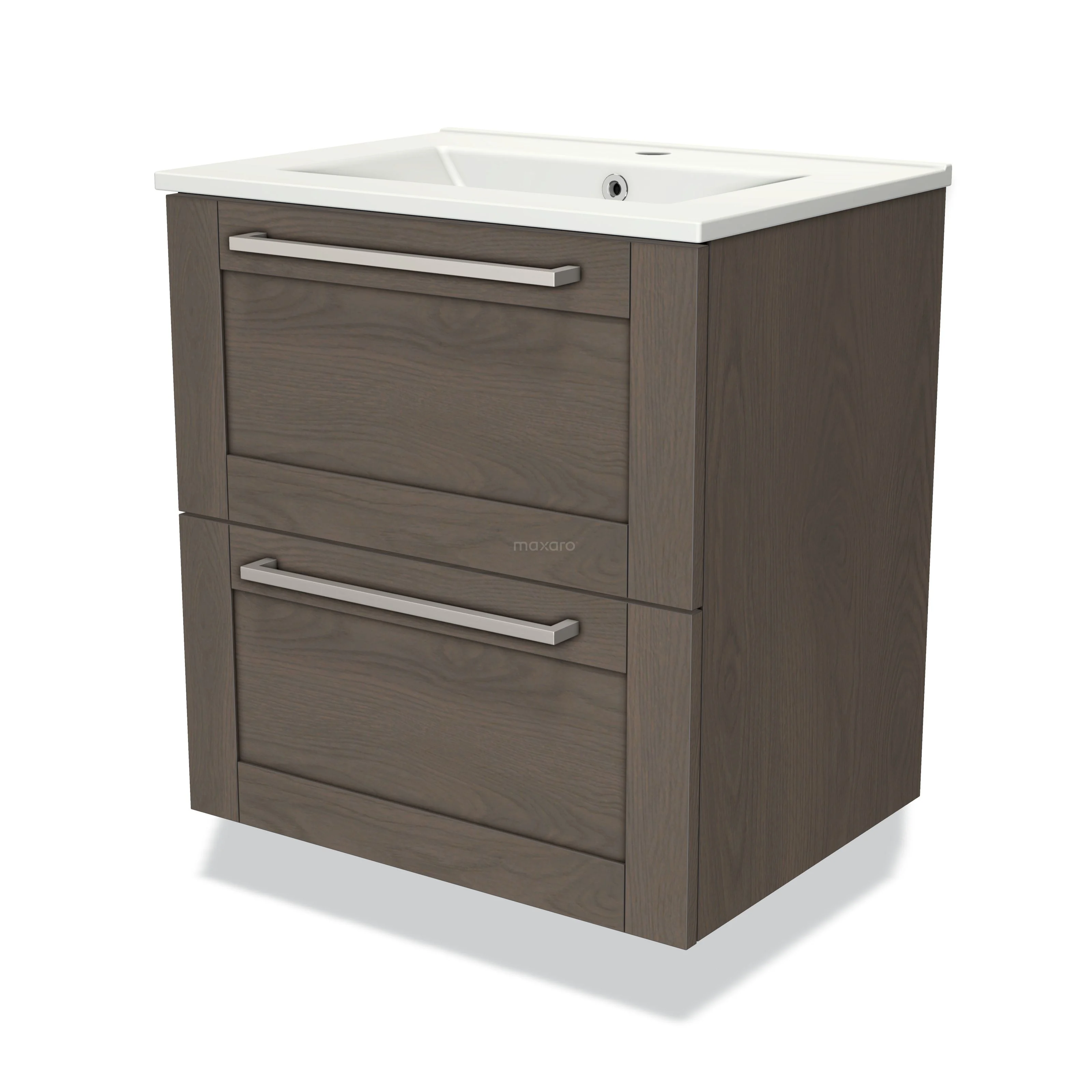 Modulo Waschtische | 60 cm Dunkelbraune Eiche Rahmen front Keramik 2 übereinanderliegende Schubladen