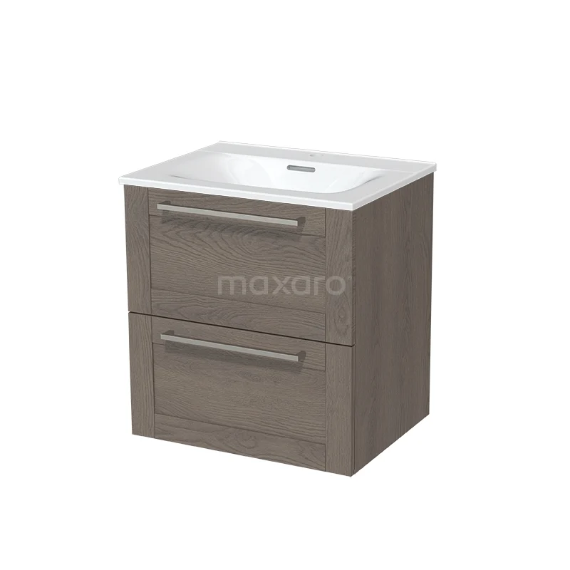 Modulo Waschtische | 60 cm Dunkelbraune Eiche Rahmen front Keramik 2 übereinanderliegende Schubladen