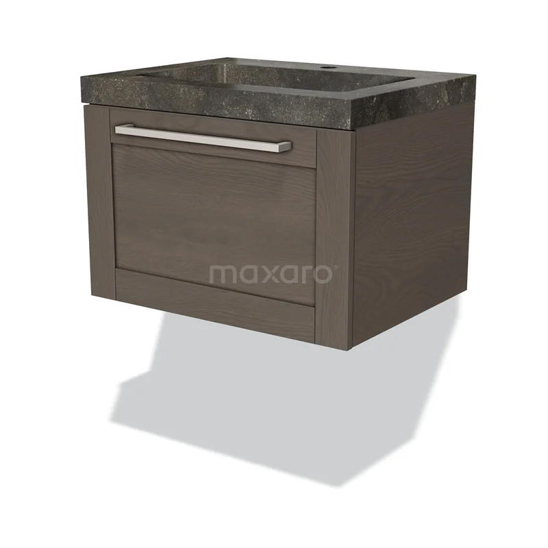 Modulo Waschtische | 60 cm Dunkelbraune Eiche Rahmen front Naturstein 1 Schublade