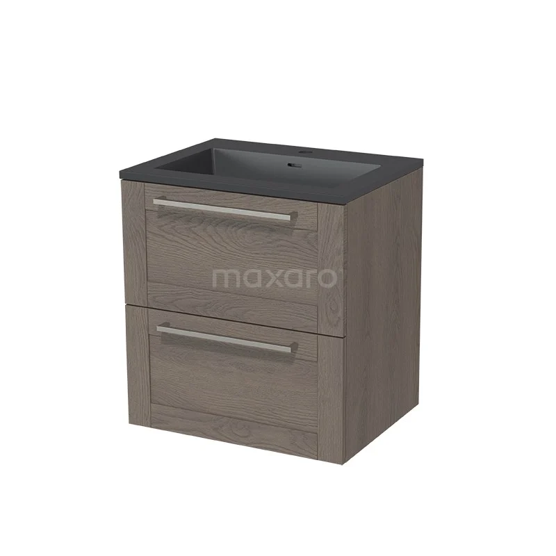 Modulo Waschtische | 60 cm Dunkelbraune Eiche Rahmen front Quarz 2 übereinanderliegende Schubladen