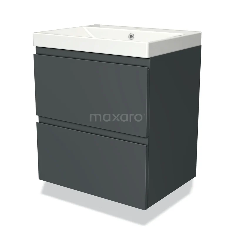 Modulo Waschtische | 60 cm Dunkelgrau Grifflos front Keramik 2 übereinanderliegende Schubladen