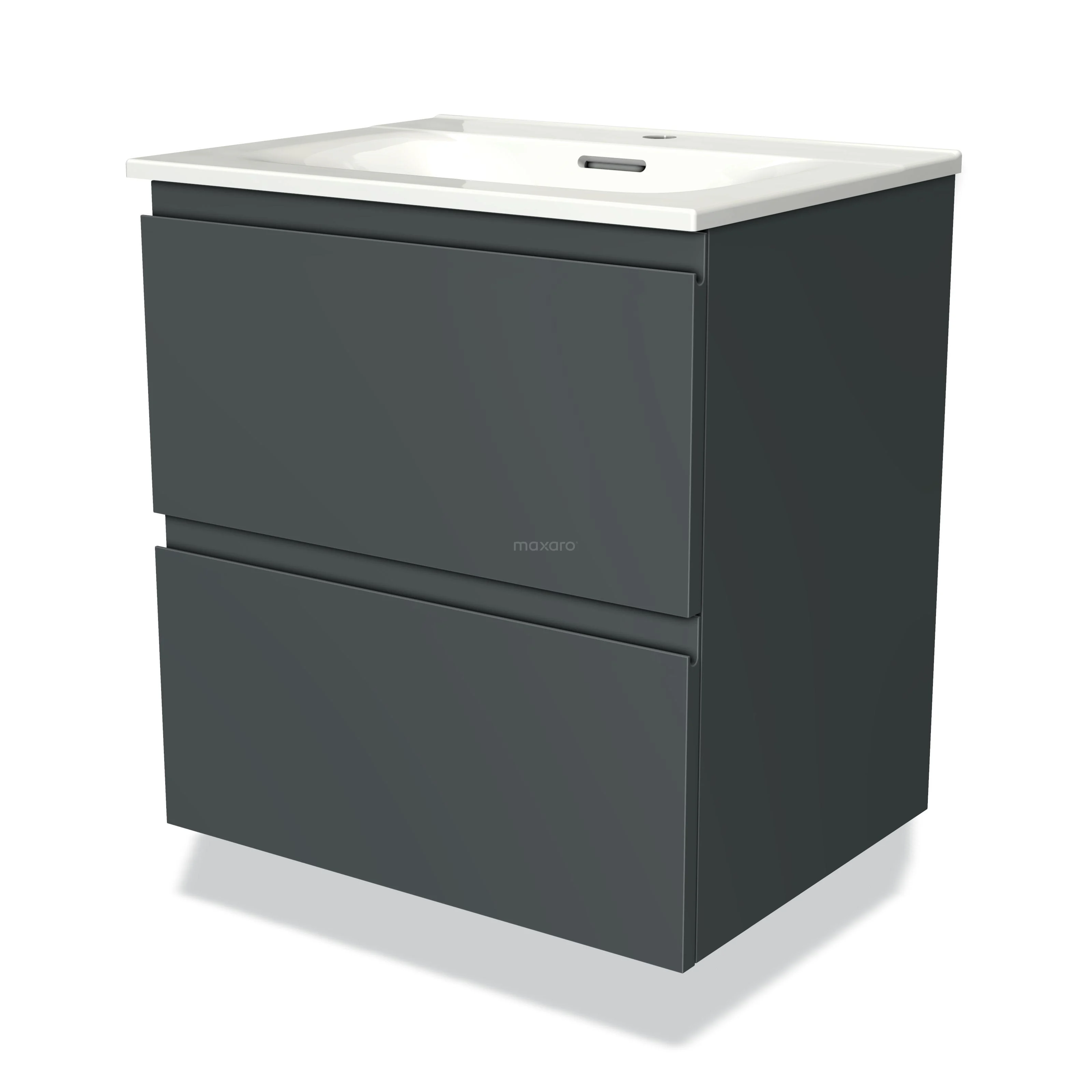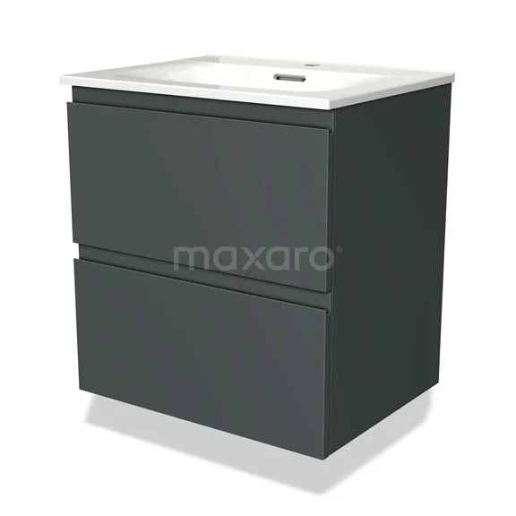 Modulo Waschtische | 60 cm Dunkelgrau Grifflos front Keramik 2 übereinanderliegende Schubladen